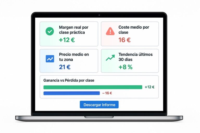 En segundos sabrás si tus precios están bien puestos y qué margen real te deja cada clase. Sin hojas de cálculo y con comparativa anónima de tu zona.